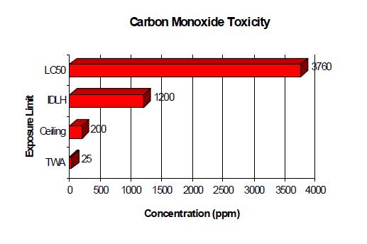 위에서 언급한 독성 기준 개념은, 독성가스 누출 사고 발생 시 개인보호구를 선정하는 데 중요한 인자로 작용한다. 예를 들면, TLV-Ceiling 값을 초과하는 환경에서는, 관련 작업자는 반드시 적절한 호흡기 보호구(방독면 또는 공기호흡기)를 착용해야 한다. 하지만, IDLH 값을 초과하는 환경이 되면, 호흡기 보호구 중에서 방독면 착용은 금지시켜야 한다. 노출된 지역에서 작업자가 착용한 방독면은, 외부 공기에 포함된 독성물질을 흡착 또는 여과하여 제거하는 방식을 채택하고 있으므로, 흡착 능력이 다해 지게 되면, 순간적으로 IDLH 농도 값을 초과하는 독성물질이 작업자에게 노출될 수 있기 때문이다. 독성을 나타내는 인자별 수치를 비교하면 다음과 같다.